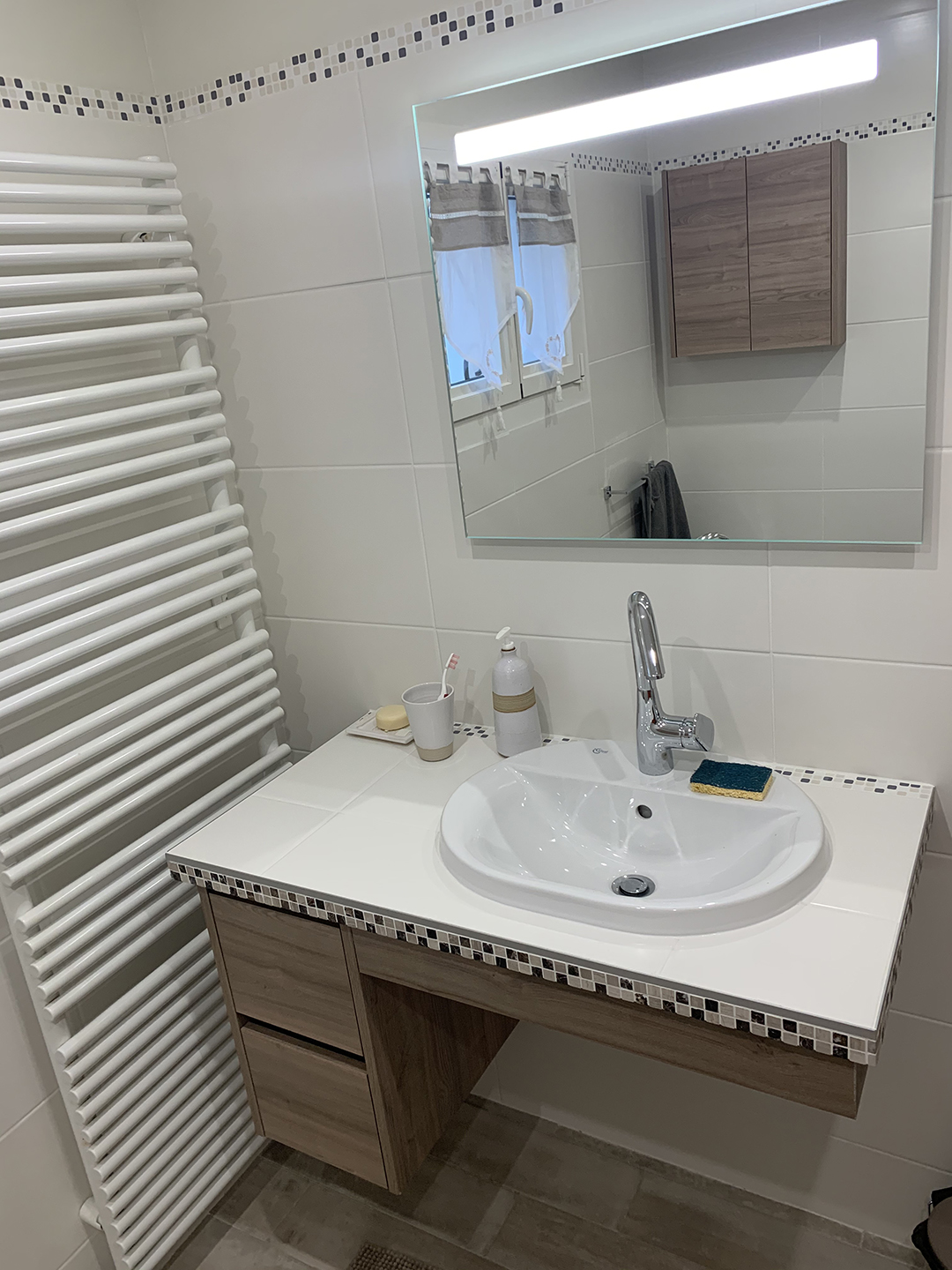 Cette salle de bain est mise aux normes PMR comme le souhaitaient nos clients.